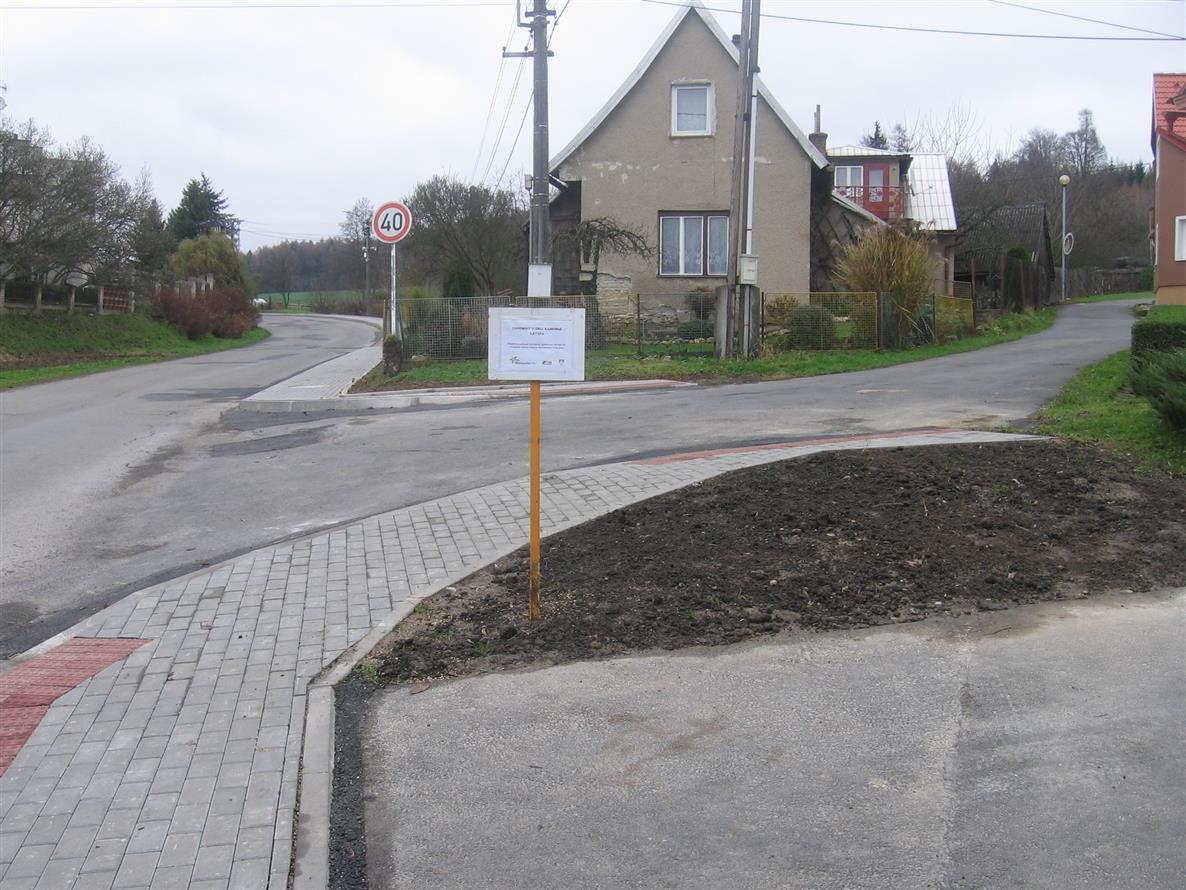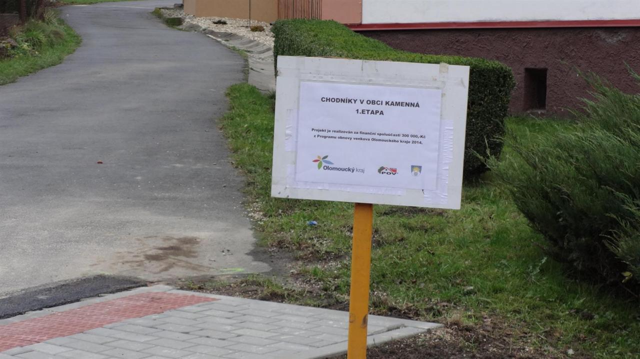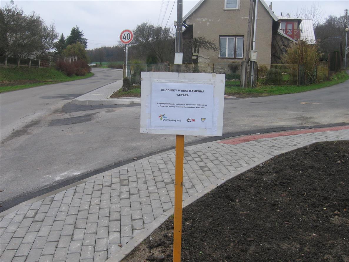 Projekt byl realizován za finanční spoluúčasti 300 tis. Kč z Programu obnovy venkova Olomouckého kraje 2014. Celkové náklady činí 755 tis.Kč. Tento chodník navazuje na stezku pro pěší, vybudovanou včetně veřejného osvětlení. Projekt významně přispěl k větší bezpečnosti občanů, především dětí, při pohybu na obecních komunikacích.